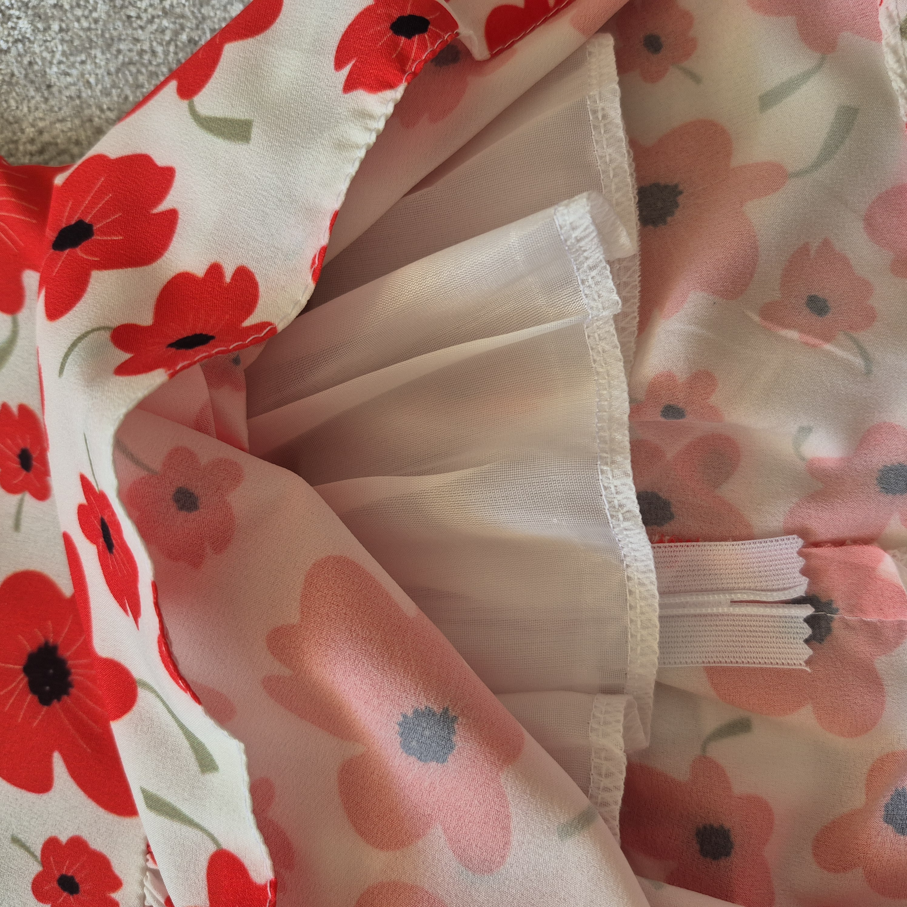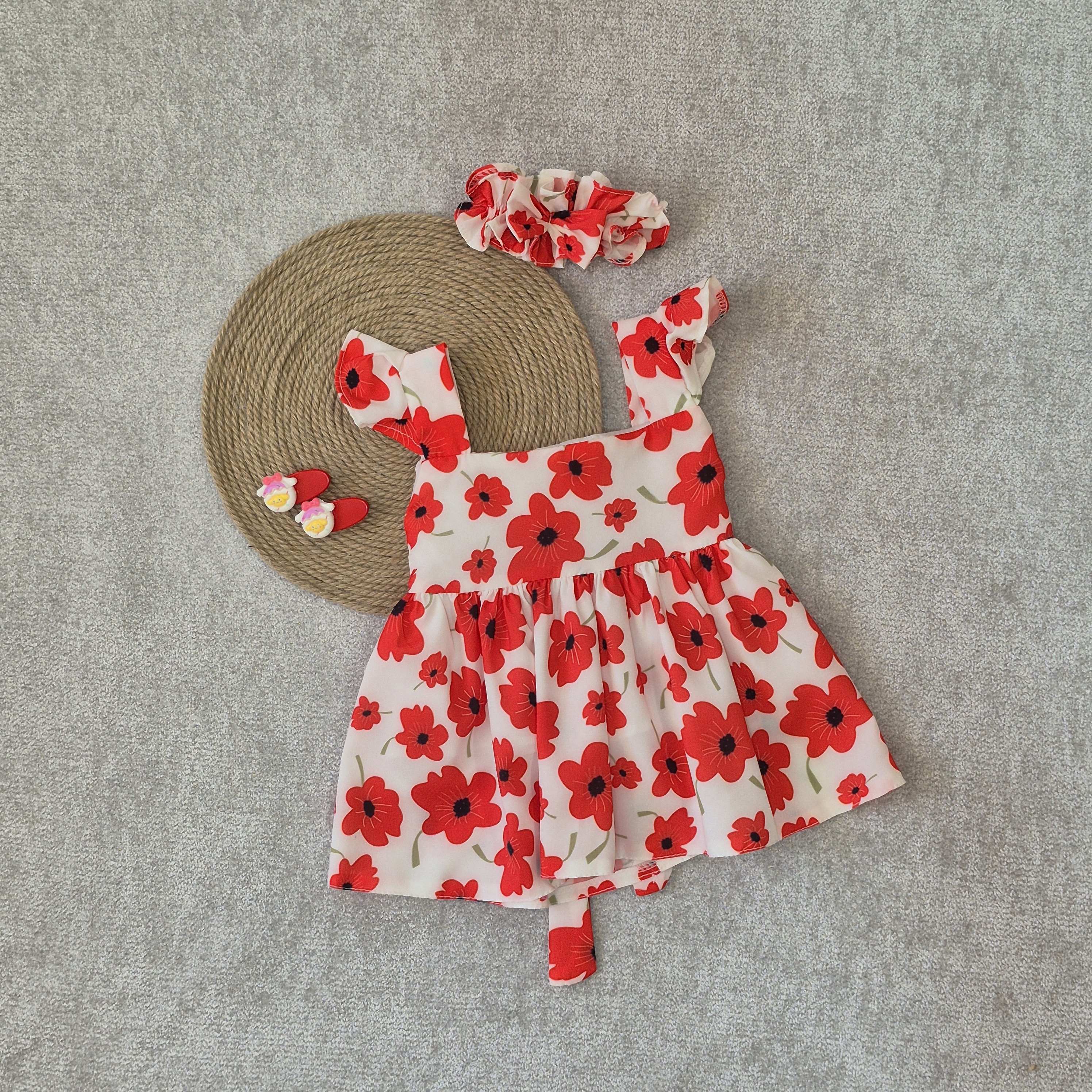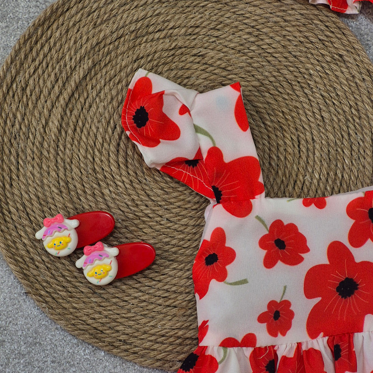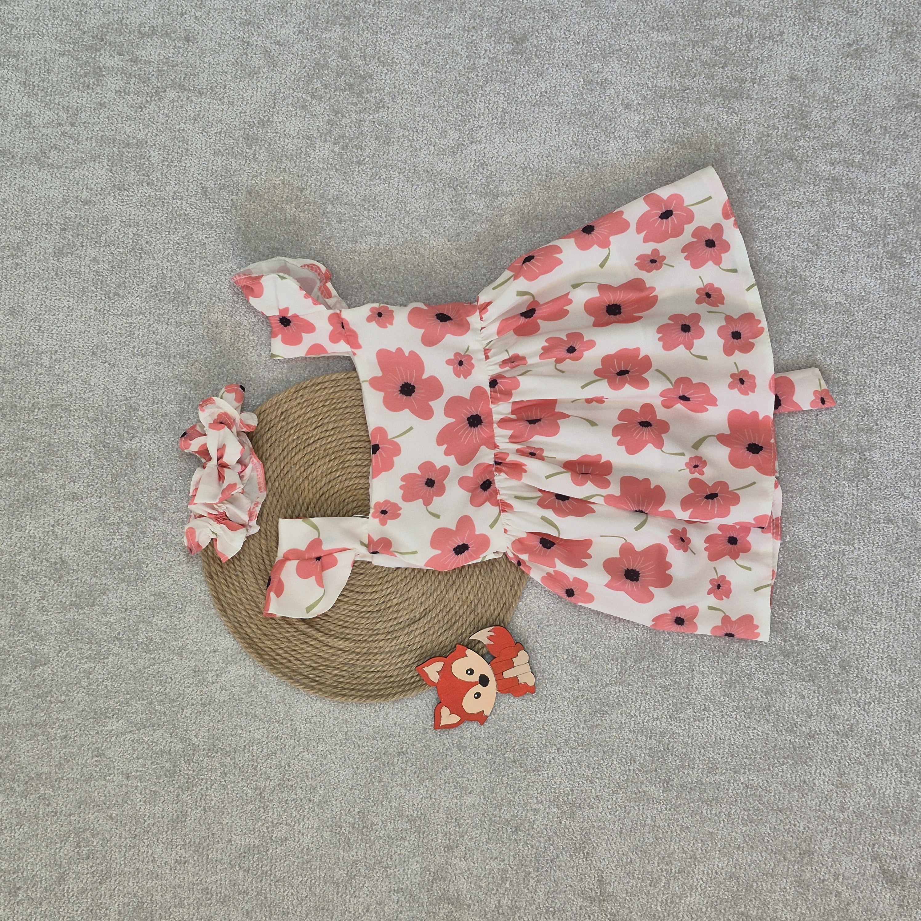 طرح گل دار به همراه یک عدد تل پارچه ای مشابه طرح خود پیراهن