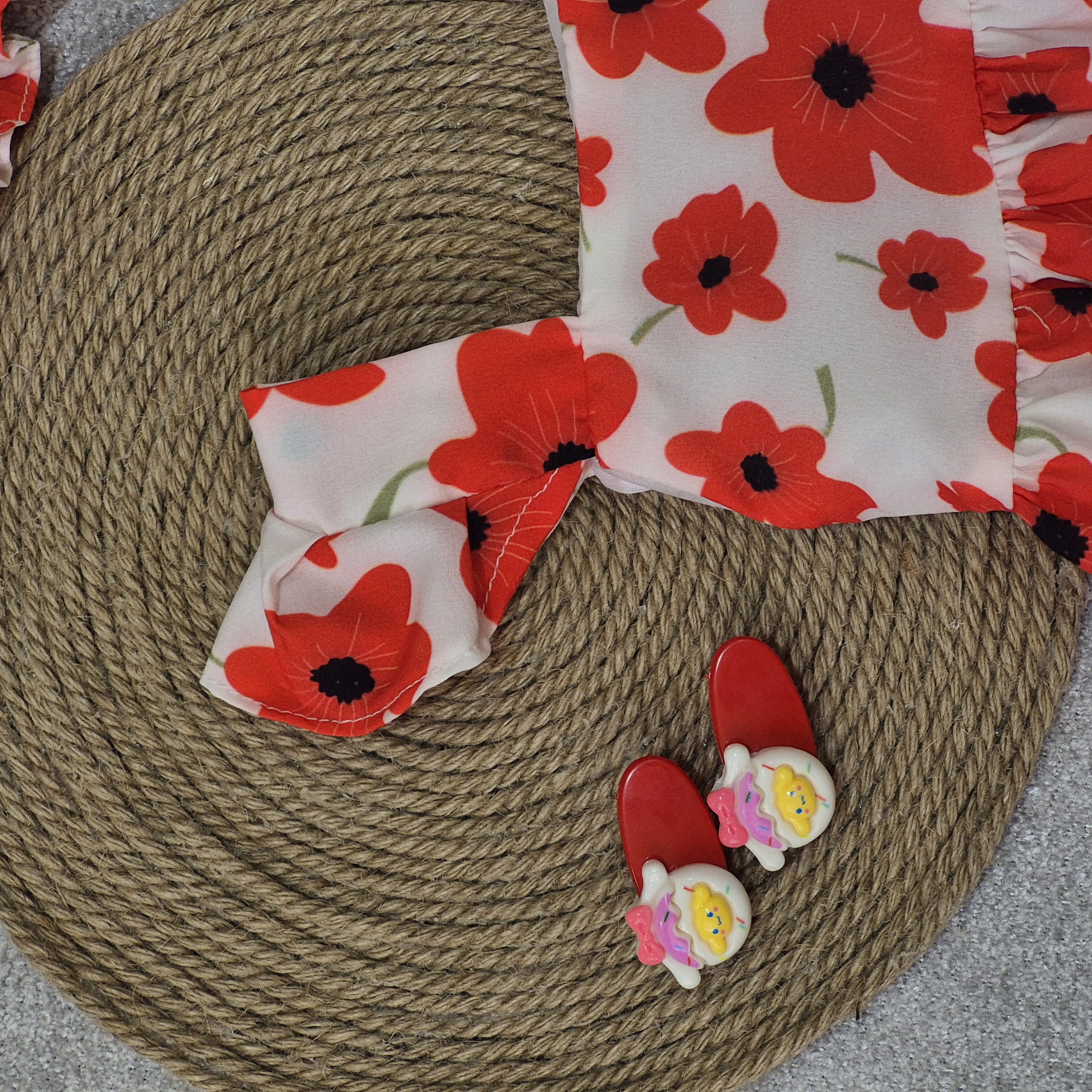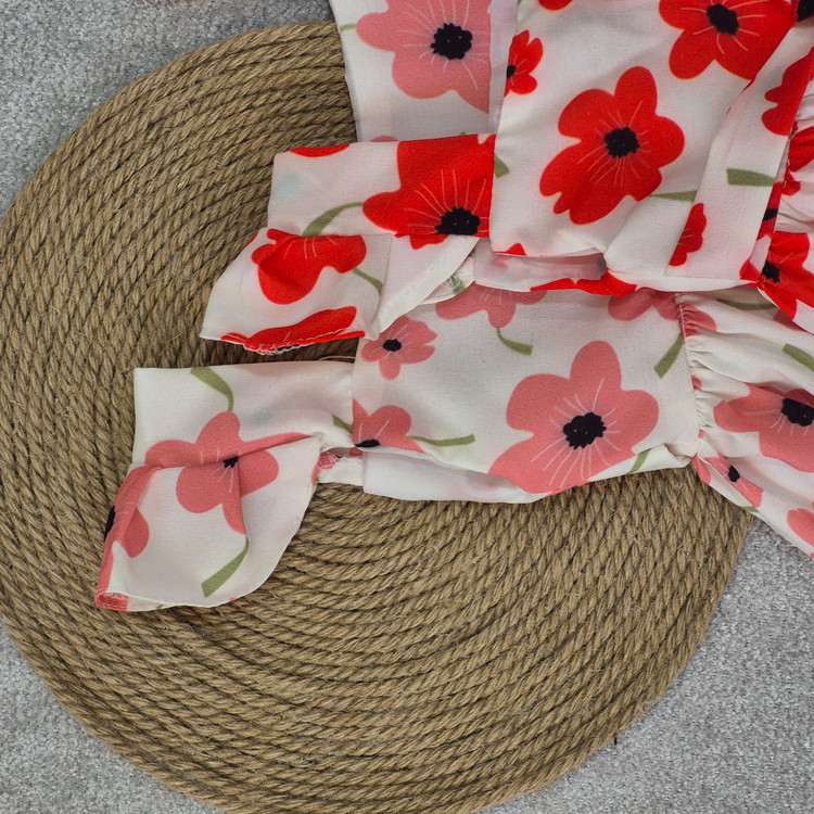 پیراهن دو تیکه مجلسی گل دار دخترانه