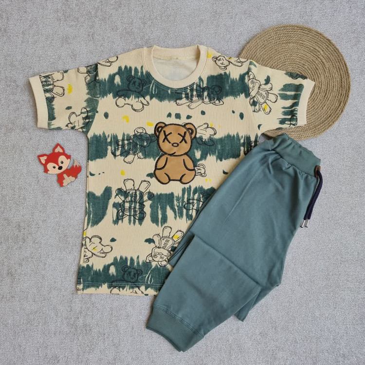 ست تیشرت و شلوارک اسپرت خرسی پسرانه