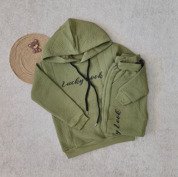 ست هودی و شلوار کلاه دار ژاکارد پنبه پسرانه